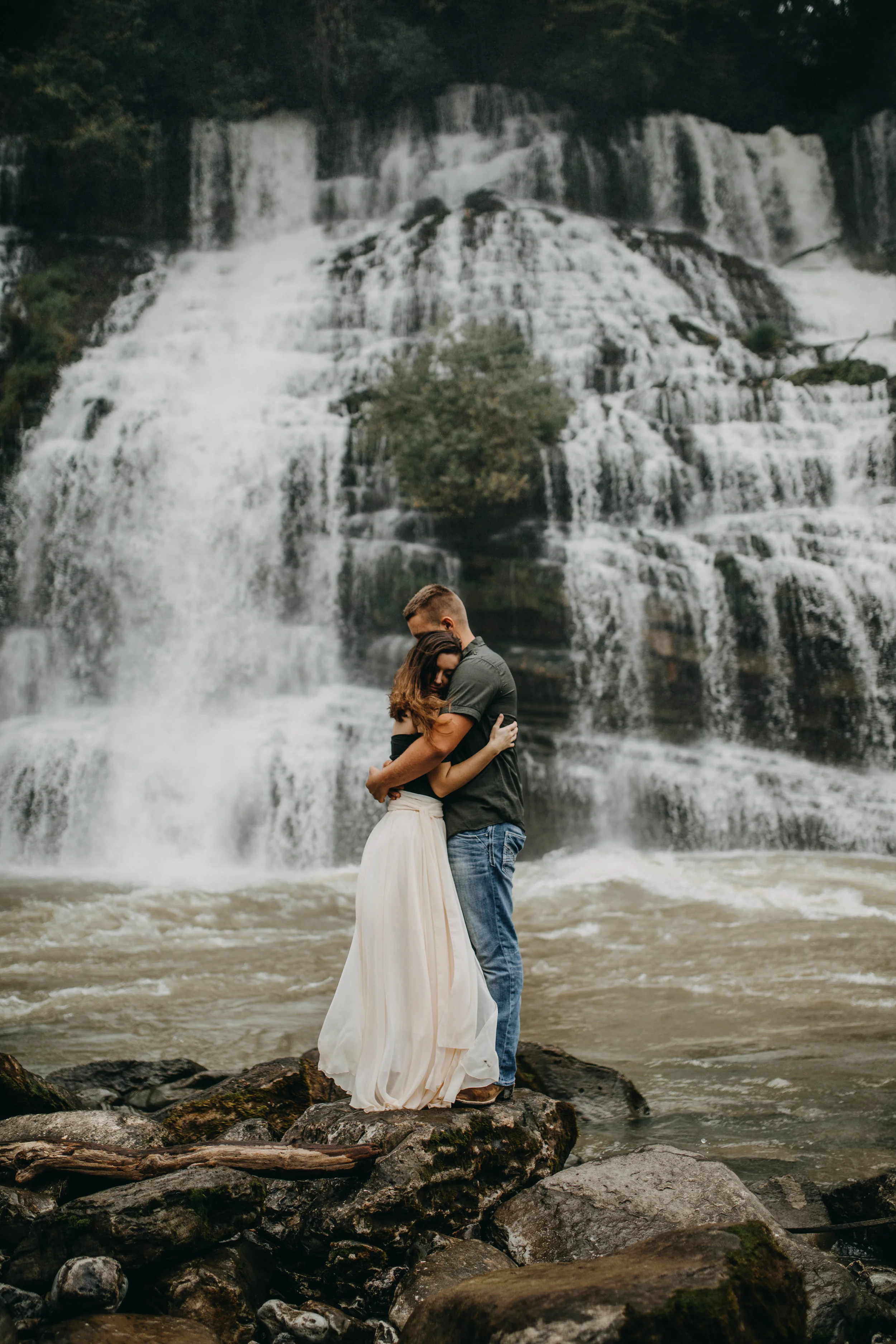 We came down to Tennessee to do this fun waterfall session with Johannah and Kyle for their anniversary. I love the emotion in this image of them holding each other, with the wind from the rushing waterfall moving her skirt and hair.
