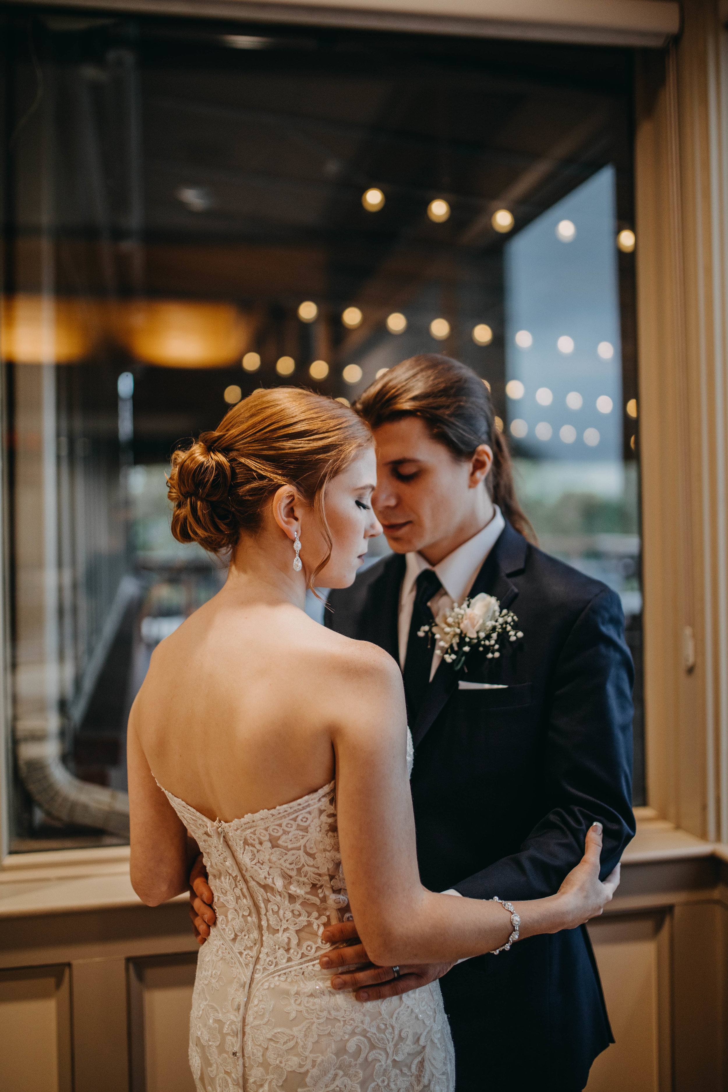 We don’t always get sunshine or subtle cloudy weather, some days the weather is just really bad. High mile winds, and pouring ran. We were stuck inside shooting all day, which was a challenge, but a challenge I was ready for. When we first got to this venue, I searched around and noticed the patio lights on the back porch, figured out how to turn them on, and put it in the back of my mind. A small detail that totally changed the atmosphere of this photo, and I love how it turned out.