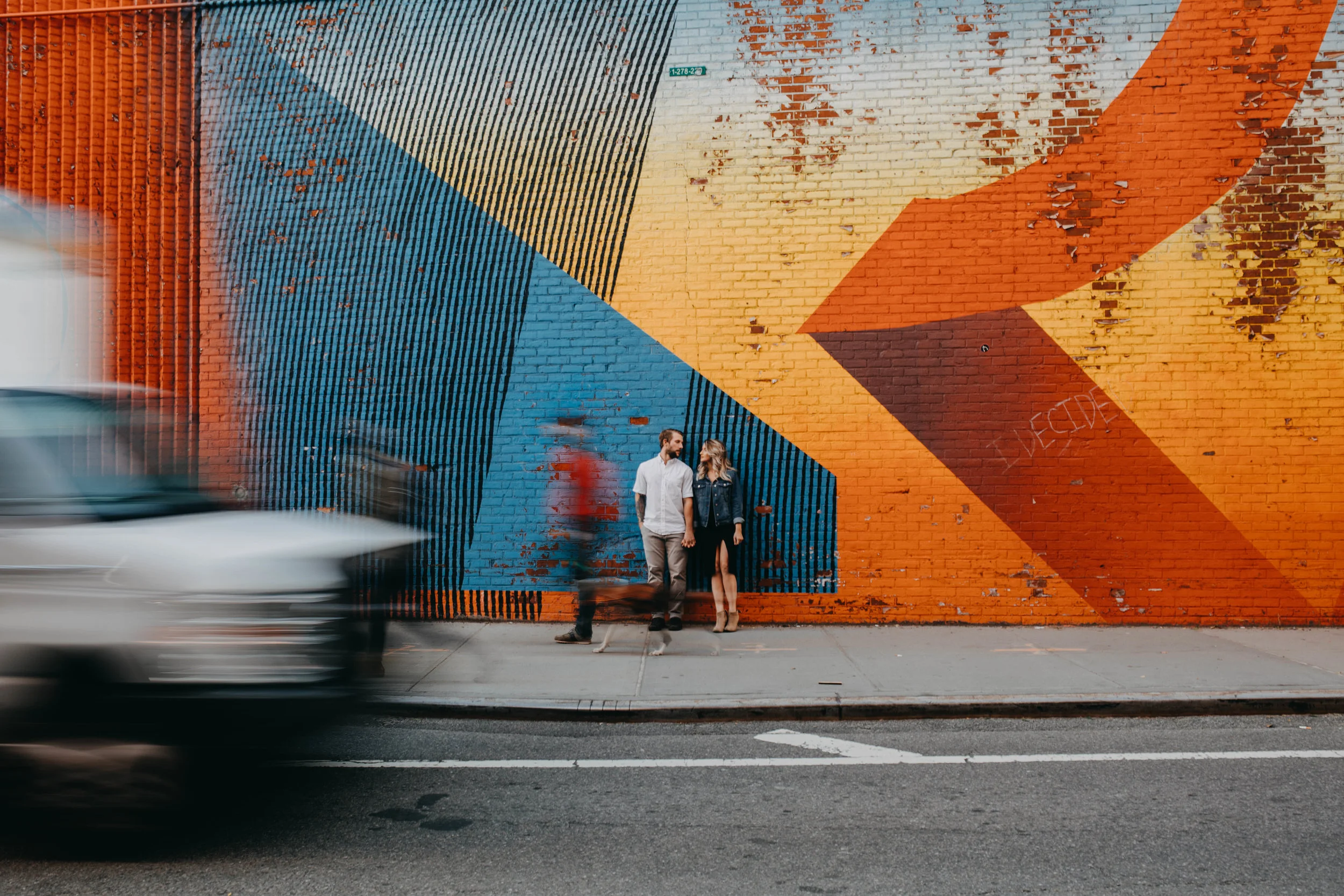 These two have become really good friends of ours, we even went to their Friendsgiving and Stasia helped me pick the song for the blog which you can view here. This is my favorite because I’ve been trying to nail this kind of image for a while, never quite getting it in the perfect way. Until this photo happened. Brooklyn art, passerby’s, and the looks they’re exchanging between each other, definitely one of my best of 2018.
