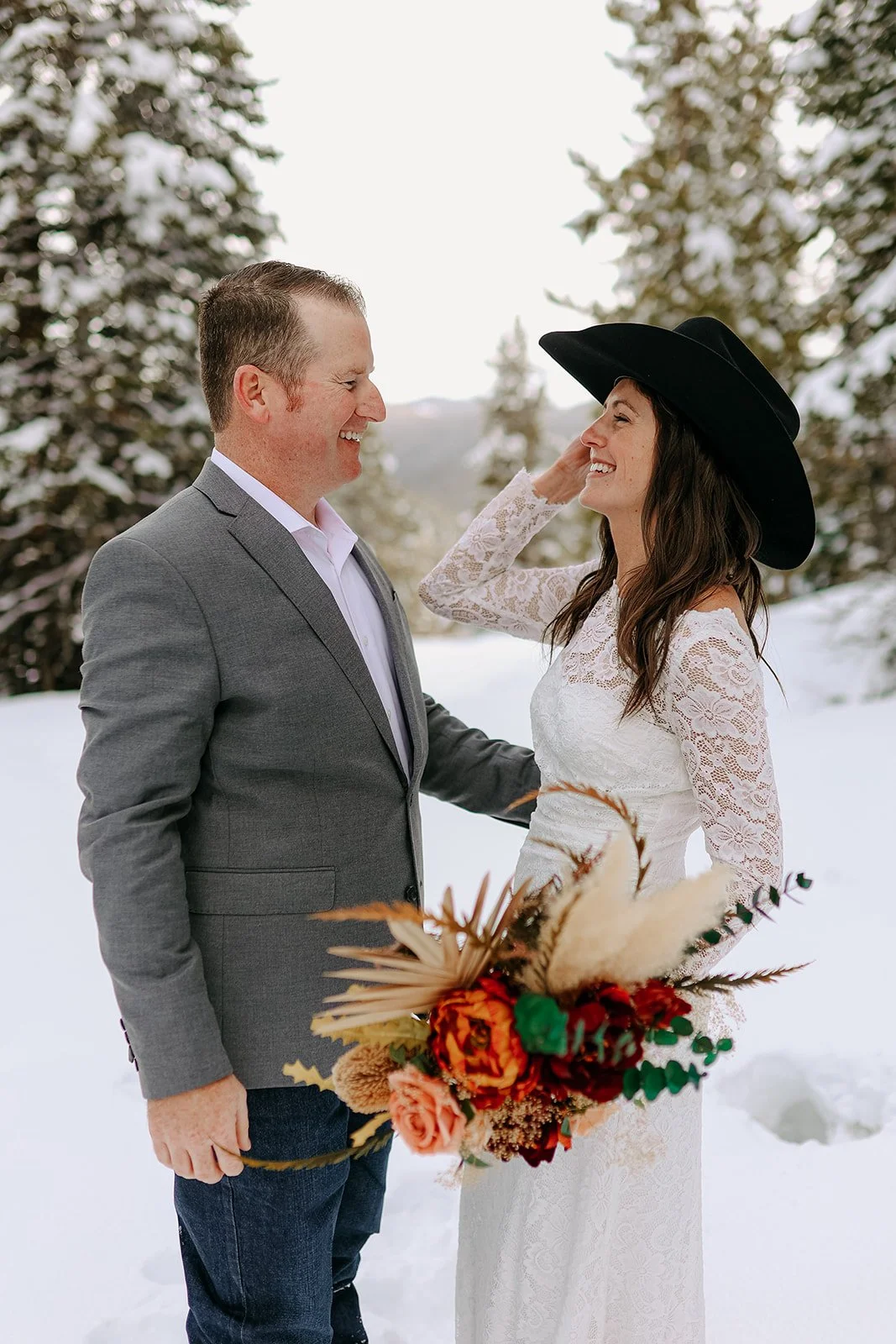 These two had a beautiful spring elopement in Colorado, that ended up looking quite wintery! Showcasing just how long the cold conditions last when you're above 9,000 elevation.